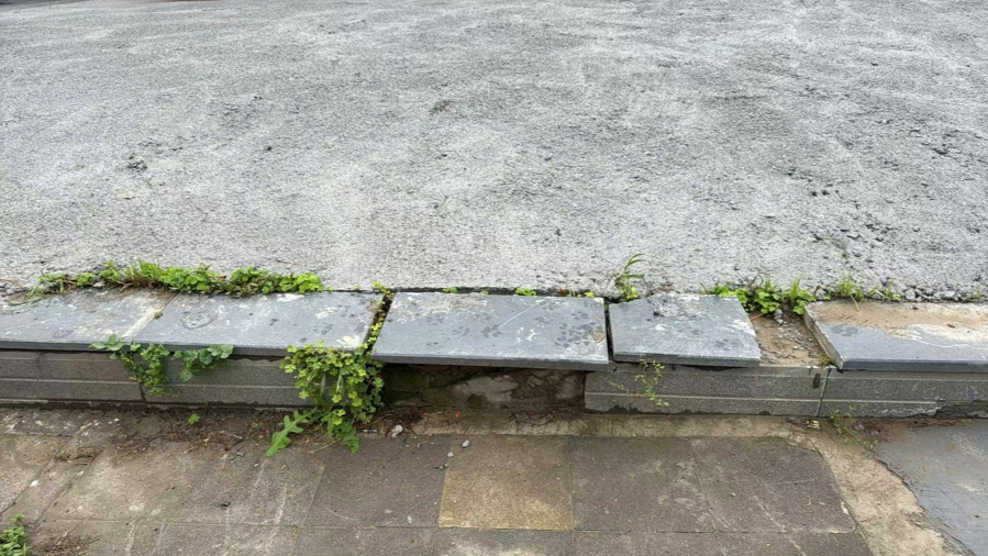 接到周先生的反映后,记者第一时间赶往现场核实情况。在事发地点,记者看到,原本的绿化带区域确实已被水泥地取代,地面上还残留着一些建筑垃圾和生活垃圾,俨然成了一个小型垃圾堆。而周先生所说的那处大理石台阶,果然存在明显的起翘、开裂和松动问题。记者试着用脚踩了踩台阶边缘,台阶立刻晃动起来,发出"嘎吱"的声响,稍有不慎就有踩空的危险。
