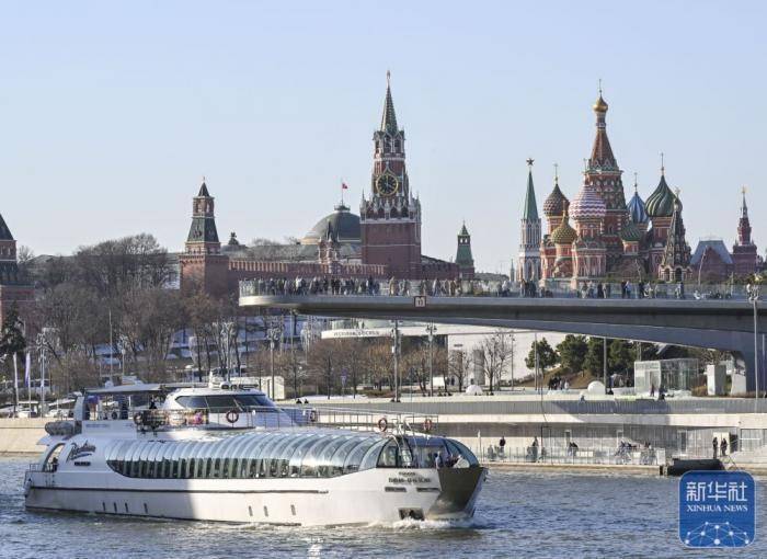 3月15日,在俄罗斯莫斯科,人们乘船观赏莫斯科河风光。