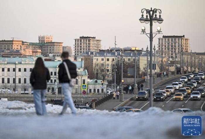 近日,俄罗斯首都莫斯科气温上升、冰雪渐融,人们纷纷走上街头,享受阳光。新华社记者 郝建伟 摄