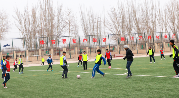 足球场上,学生们正在进行日常训练。喀什地区融媒体中心记者陈文军摄